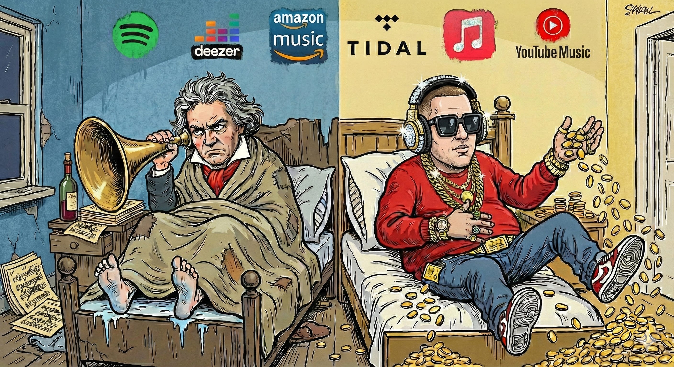Ces amis de l’Art et des artistes traitent aussi négligemment la musique que Spotify et son OGG Vorbis 160 kbit/s. Et tout comme Spotify et la plupart des plateformes de streaming, ils privilégient les tubes et méprisent les répertoires les moins populaires en dégradant encore plus la qualité sonore des fichiers « les moins écoutés ».