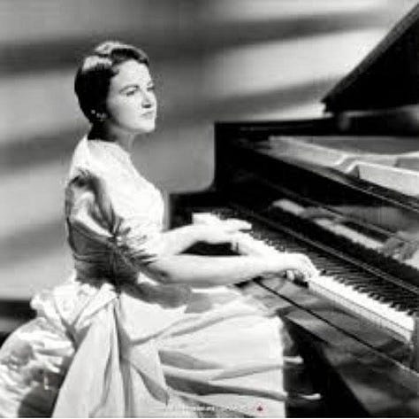 Si vous ne connaissez pas, je me permets de vous renvoyer à sa fiche Wikipedia mais pas seulement : il y a beaucoup de documentation disponible sur cette artiste merveilleuse, enfant prodige maltraitée et malheureuse (elle a publié un livre Forbidden Childhood dans lequel elle raconte sa terrible enfance), qui fut élève d’Arthur Schnabel, d’Alfred Cortot, de Josef Hoffmann et de Rachmaninov (excusez du peu !) et à son tour pédagogue passionnée. Je la revois encore quand j’ai eu le bonheur de la rencontrer il y a quelques années à Paris en compagnie de sa sœur : elle venait de faire son come-back à Carnegie Hall !