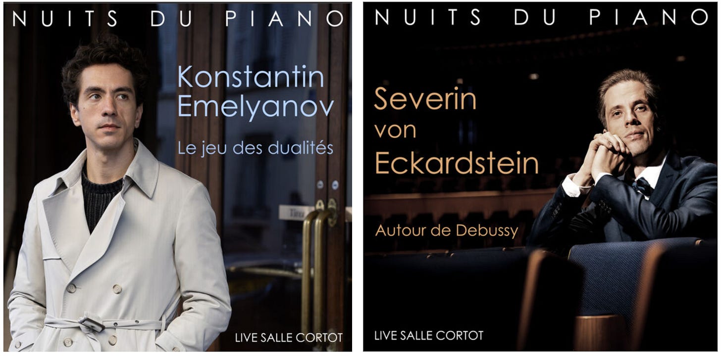On comprend que le pari ne peut être gagné qu’avec des artistes de très haut niveau et, d’une certaine manière, les deux pianistes auxquels sont consacrées les deux nouveautés, quoique différents, se situent sur une sacrée orbite. Le nom de l’étonnant Severin von Eckardstein n’est pas vraiment inconnu des amateurs : il a été Grand Prix du Concours Reine Elisabeth en 2003. Pour son récital à Cortot le 17 décembre 2024, Eckardstein avait créé une guirlande de pièces “autour de Debussy” : un programme-voyage passionnant et peu conformiste.