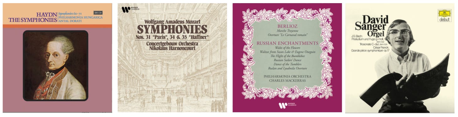 Cependant, PrestoMusic n’est pas exempt non plus de points à améliorer. Si la plateforme permet d’accéder à une recension quasi exhaustive de ce qui lui est livré chaque semaine, elle mélange, comme ses consœurs, Qobuz y-compris, nouveautés et rééditions. Un amateur chevronné y retrouvera avec plaisir ses vertes années, mais un débutant devra deviner par lui-même que certains disques ne sont pas « parus le 13 mars 2026 » comme les quatre disques illustrés ici, mais bien dans les années 1960 ou 1970. Cette distinction basique entre nouveautés réelles et rééditions est cruellement absente et brouille la persective historique à de jeunes amateurs qu’on devrait encourager. Je trouve étonnant qu’un si petit métier comme le disque classique se soucie si peu d’éduquer de nouveaux clients.